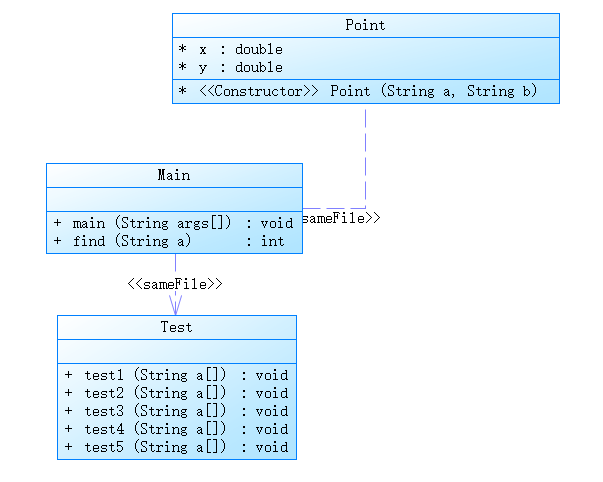 该题目跟题目集三7-1的输入格式判断非法类似,但是因为7-1我的代码判断不是很完善,所以套入这题出现bug有两个测试点未通过,经过完善find方法得以通过,并且我对输入数据的长度和字符数量进行了判断。该题我创建了Point类(点)和Test类(方法),Point类用于取用其中的方法对应题目的选项。通过Main类,Point类,Test类共同完成该题。