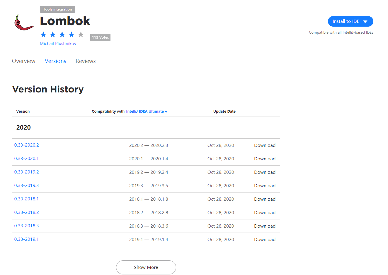 官网:https://plugins.jetbrains.com/plugin/6317-lombok/versions