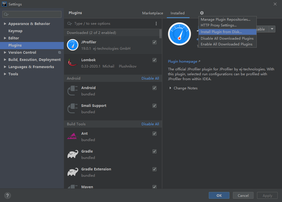 Setting--Plugins--install Plugin from Disk... --选择zip文件--点击ok
