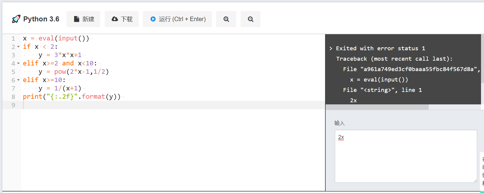 (2)数学公式求解:当用户不符合输入格式时,程序运行报错。