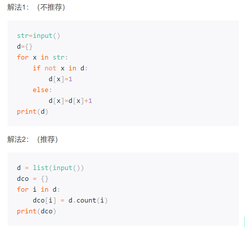 2)输入格式是一个以回车结束的字符串,例如输入abc1ab,输出{'a': 2, 'b': 2, 'c': 1, '1': 1}。