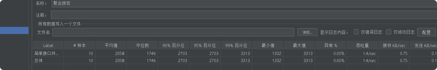 3. 添加“聚合报告”监听器,运行后查看平均响应时间、90%响应时间、成功数等并发指标。