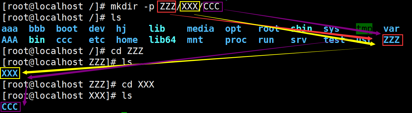 mkdir -p 目录名1/目录名2/目录名3 ---递归创建目录