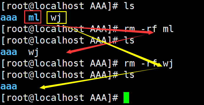 rm -rf 目录/文件名 ---删除目录/文件