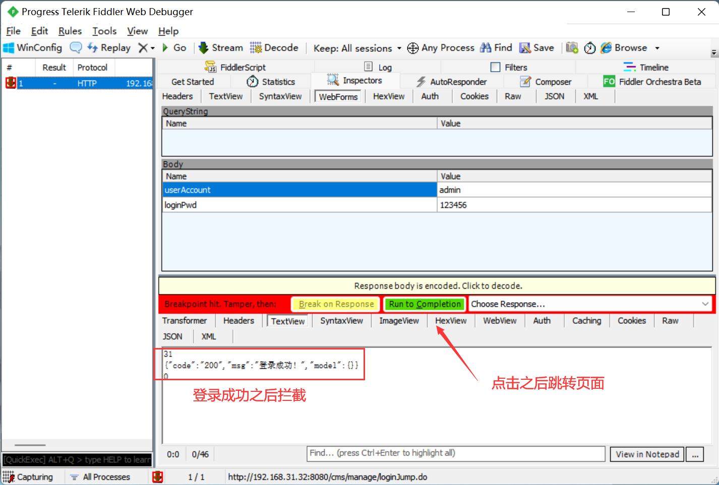 在响应之后拦截:bpafter+url (bpafter与url之间有空格)