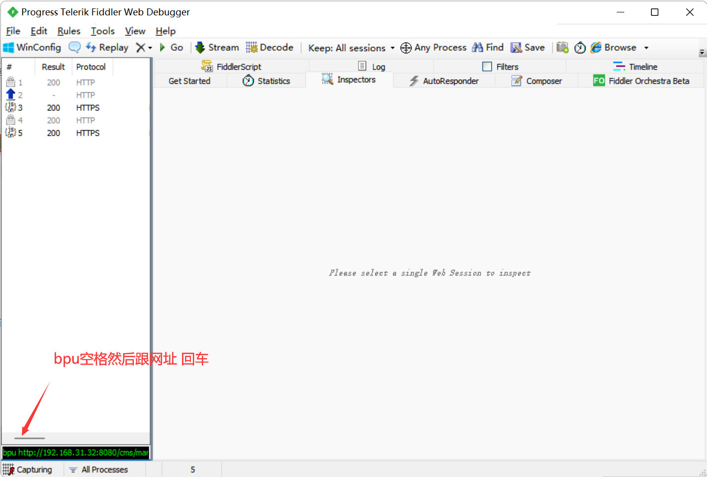 在请求前拦截:bpu+url (bpu与url中间要空格)