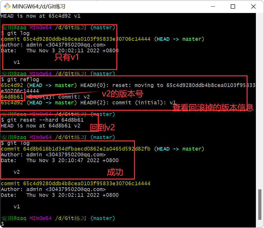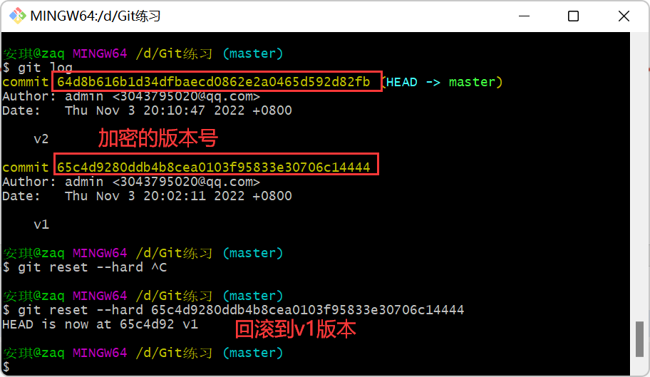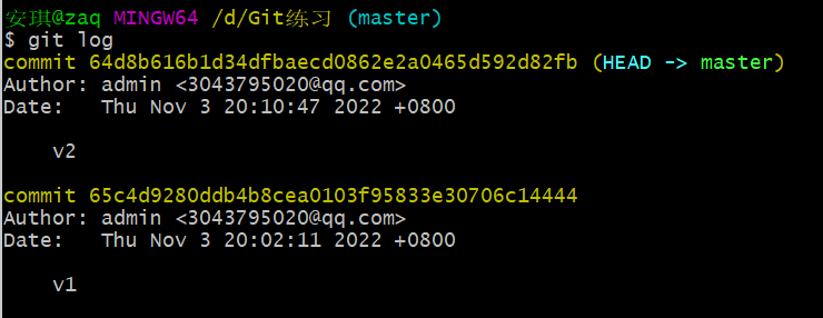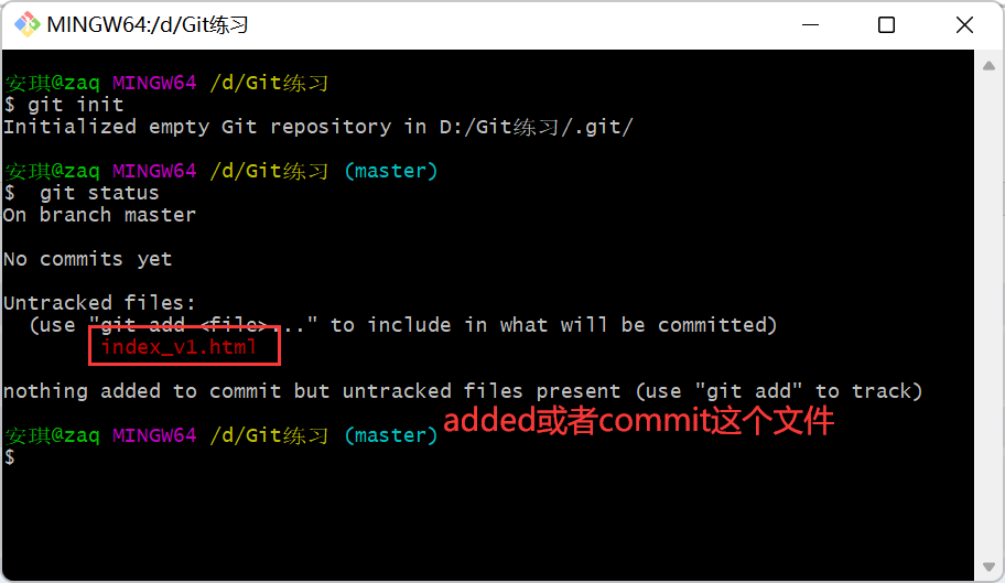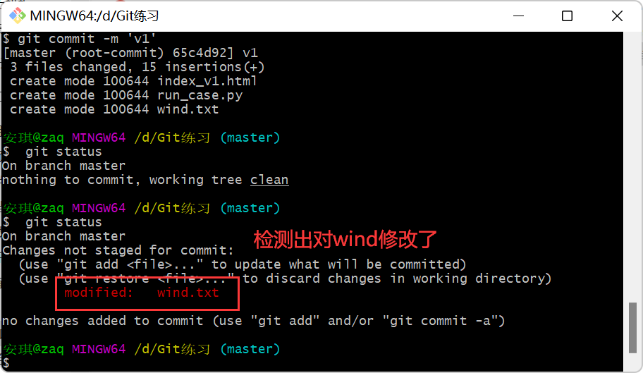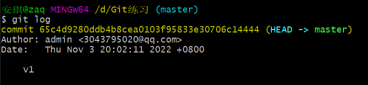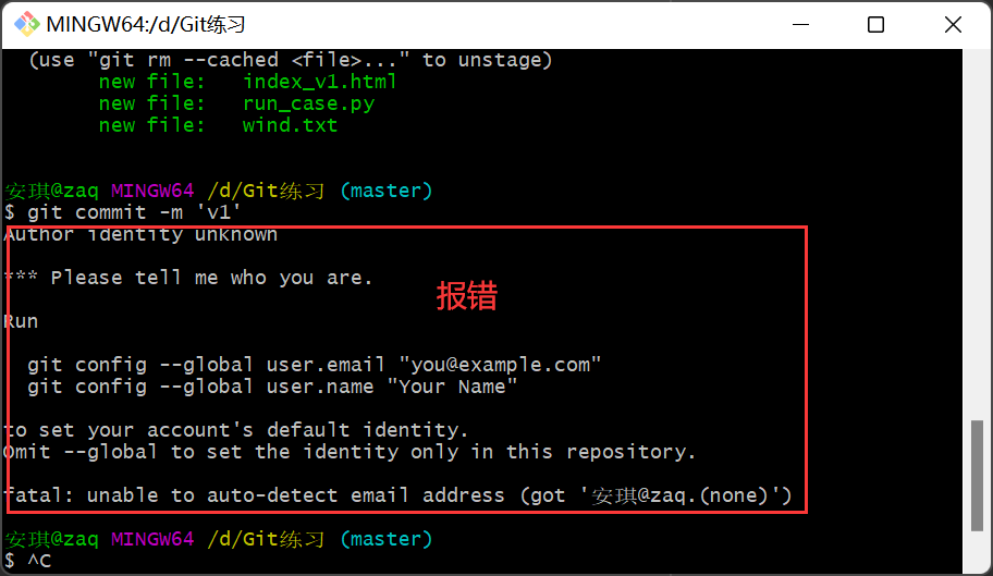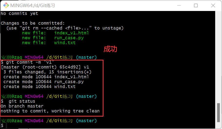 git commit -m 'v1' ---生成版本信息 比如v1,如果报错后面加