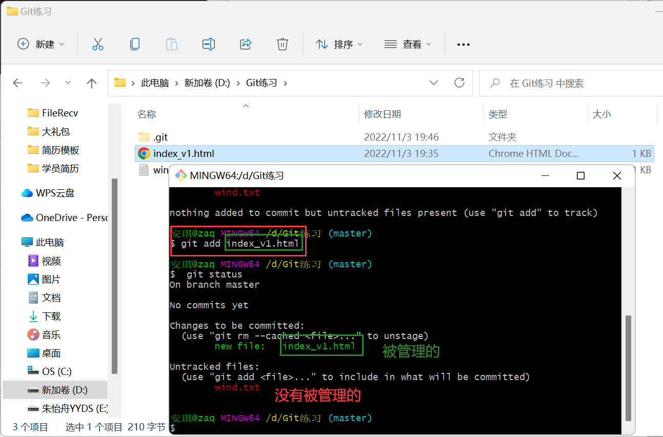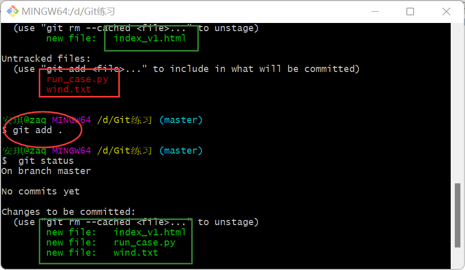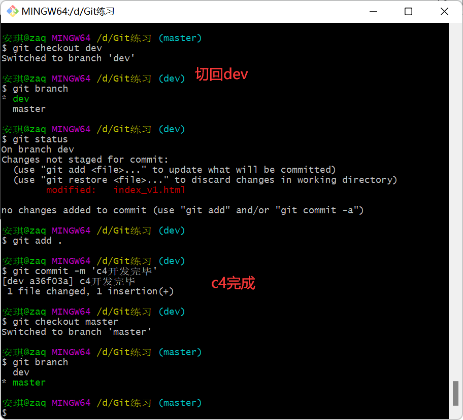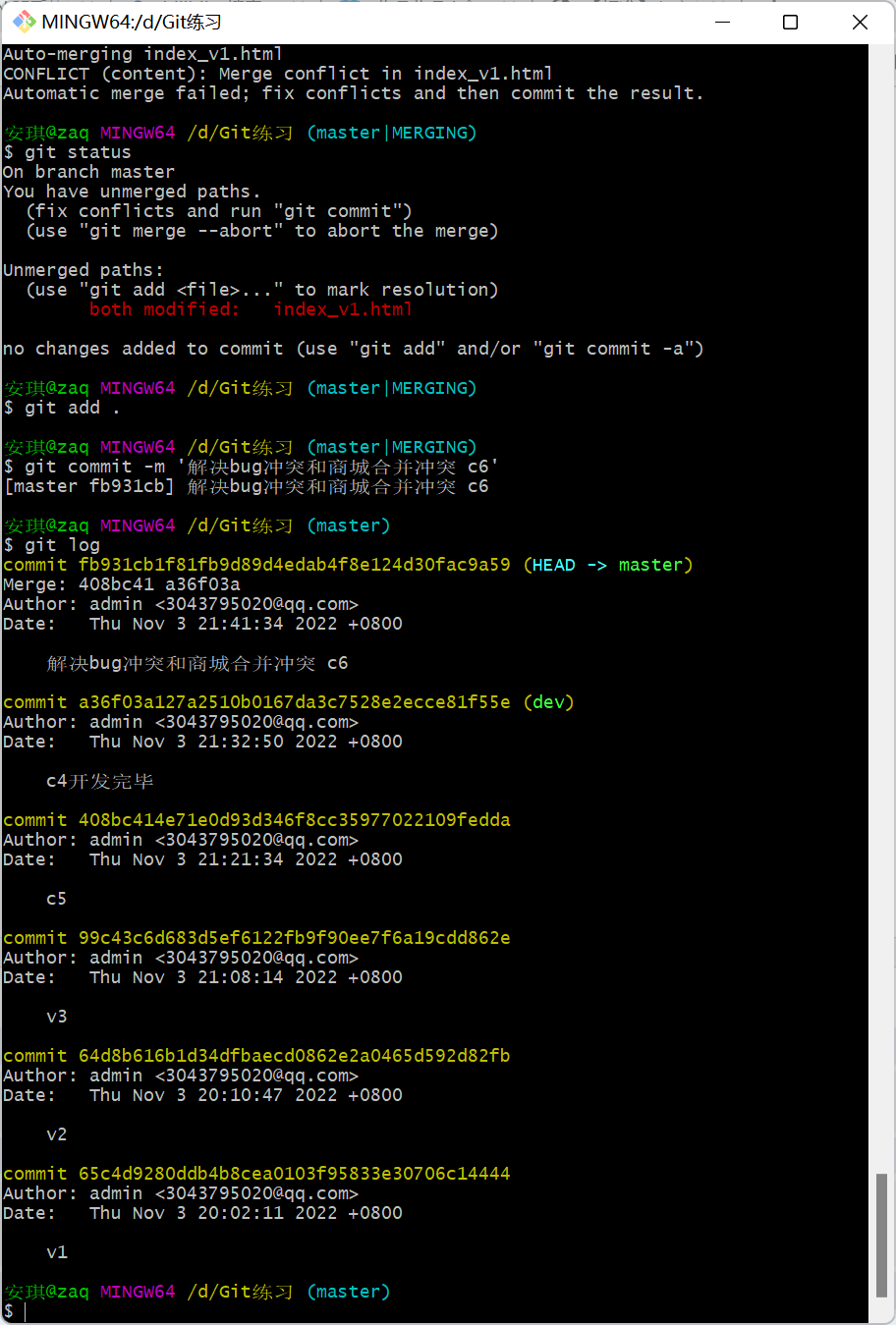 git commit -m 'v1' ---生成版本信息 比如v1,如果报错后面加