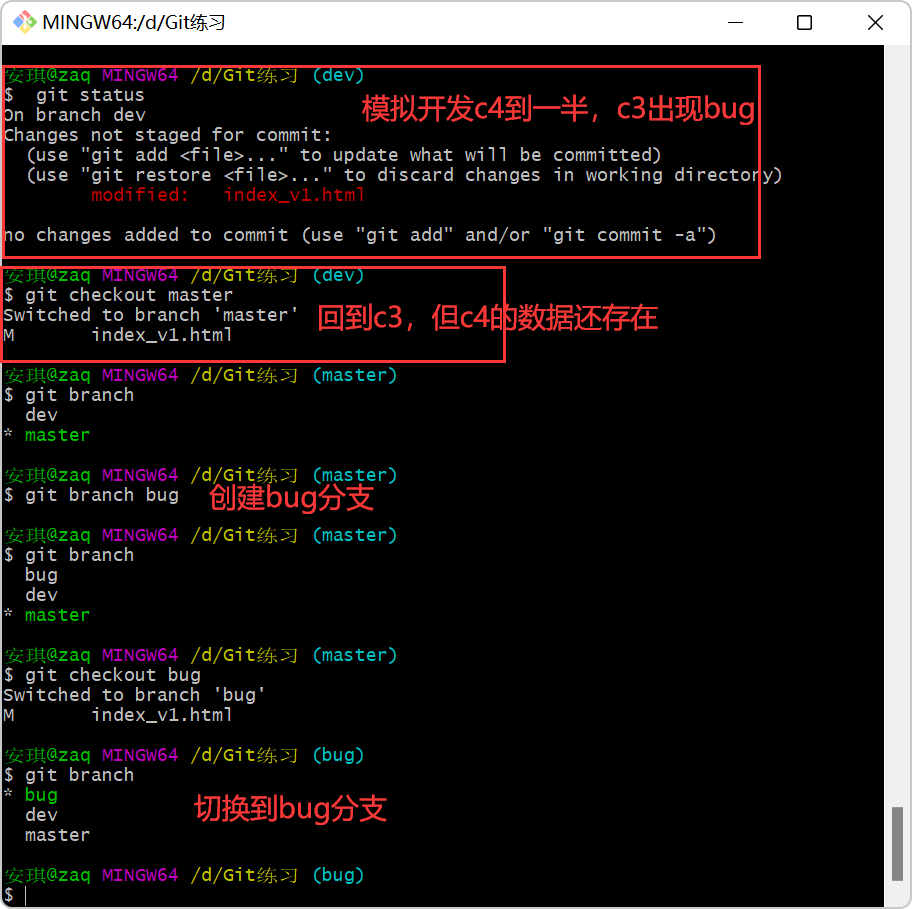 首先先回到c3,然后单独建一个c5来解决bug, 解决完之后把代码合并到c6。