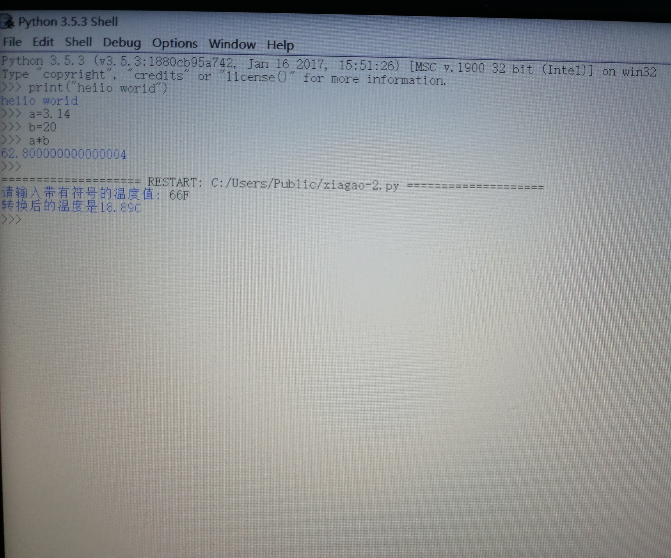 温度转换实验及输出结果