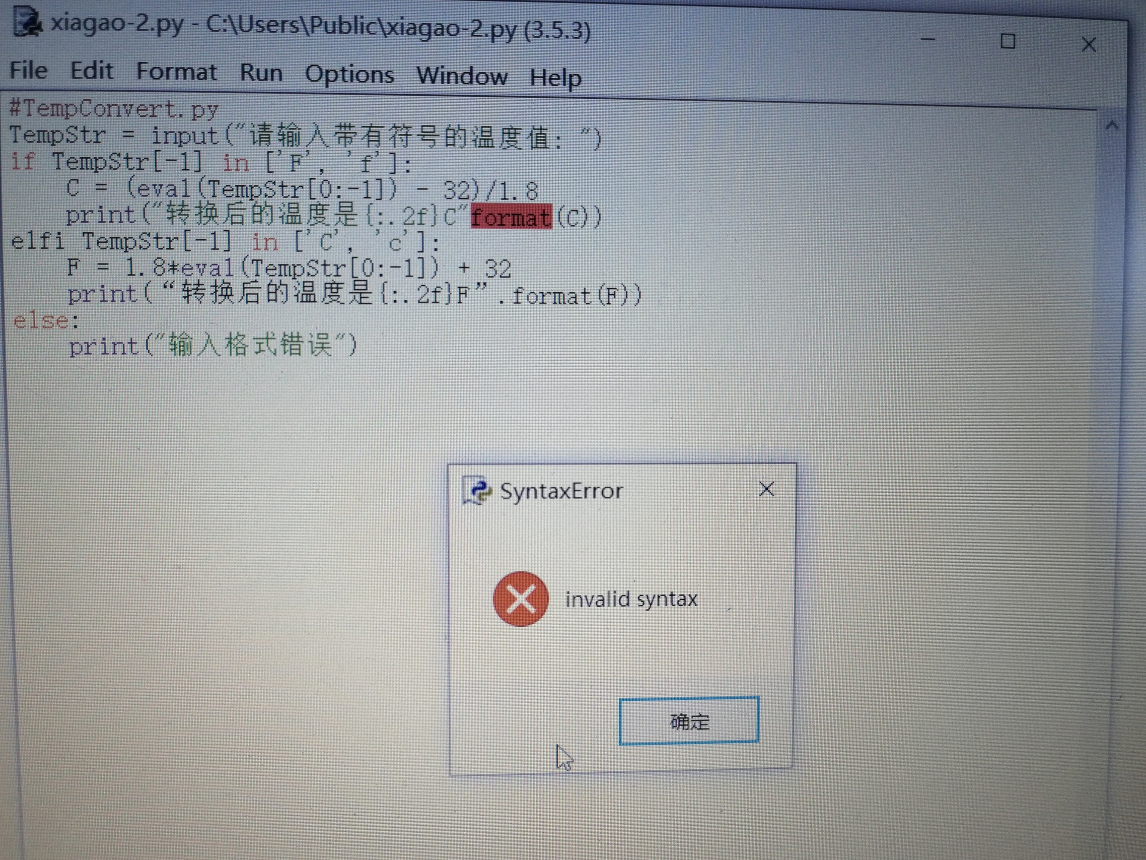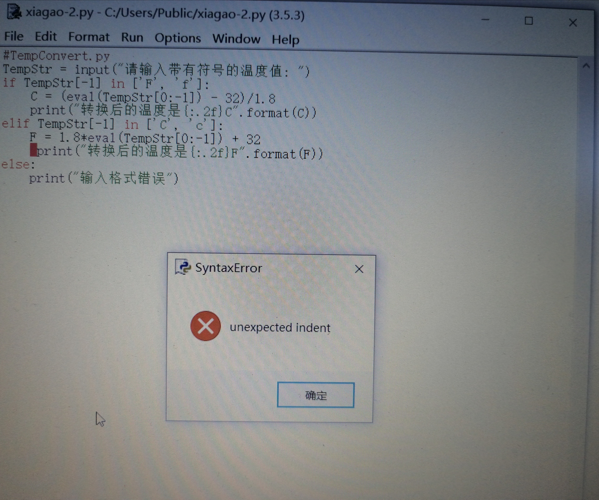 (结果:缩进有错误)