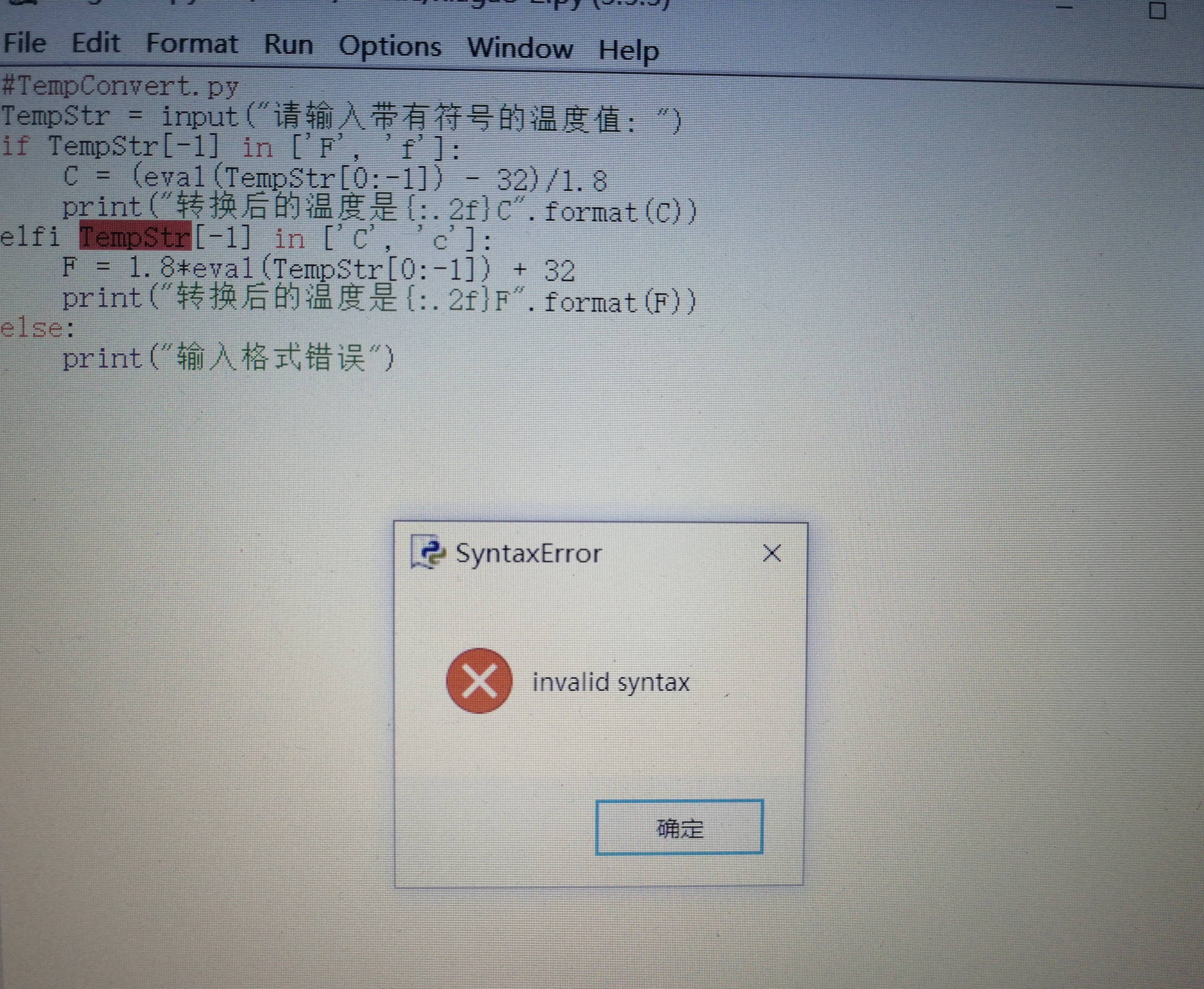 (2)人为按照以下情况分别把程序改错,尝试运行程序,并观察结果记录IDLE给出的错误提示,通过完网络查找资料,分析错误的含义。