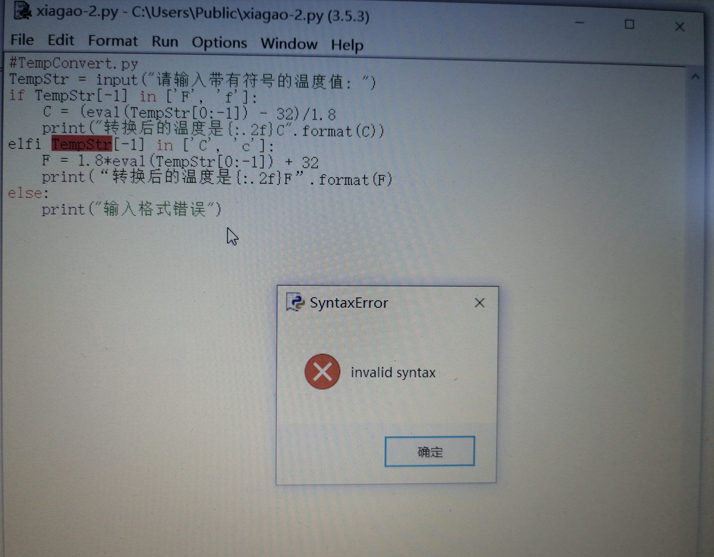 b) 把关键词elif 改为 elfi ,或者print 写错 prinnt