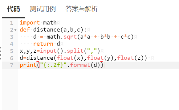 print("{:.2f}".format(d))#输出距离值,保留三维小数