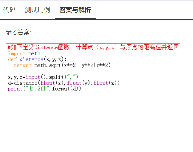 #请在这里定义distance函数,计算点(x,y,z)与原点的距离值并返回