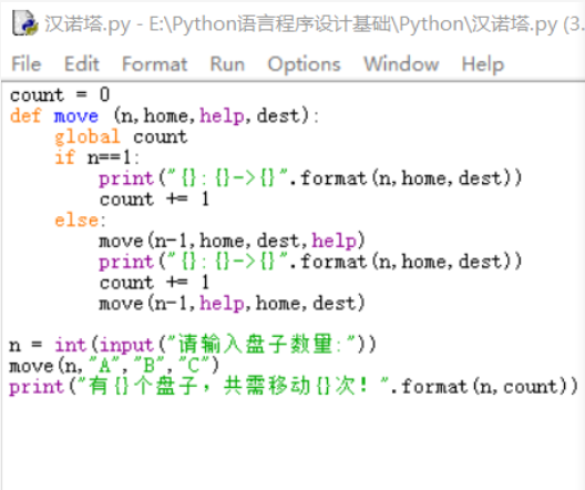 题目2、汉诺塔的求解(可选,自行在本地电脑实现)