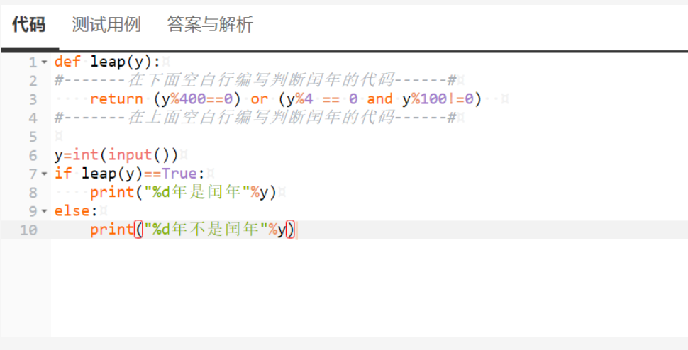输出年份是否闰年的判断结果,请见输入输出示例说明