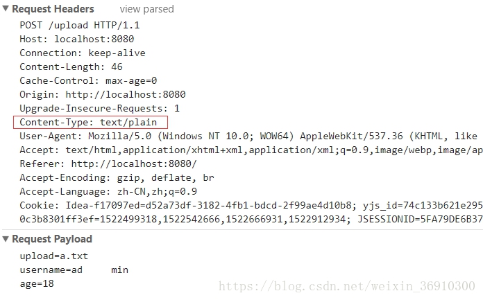 通过观察发现这个的请求体就发生了变化。这种请求体被称之为多部件请求体。