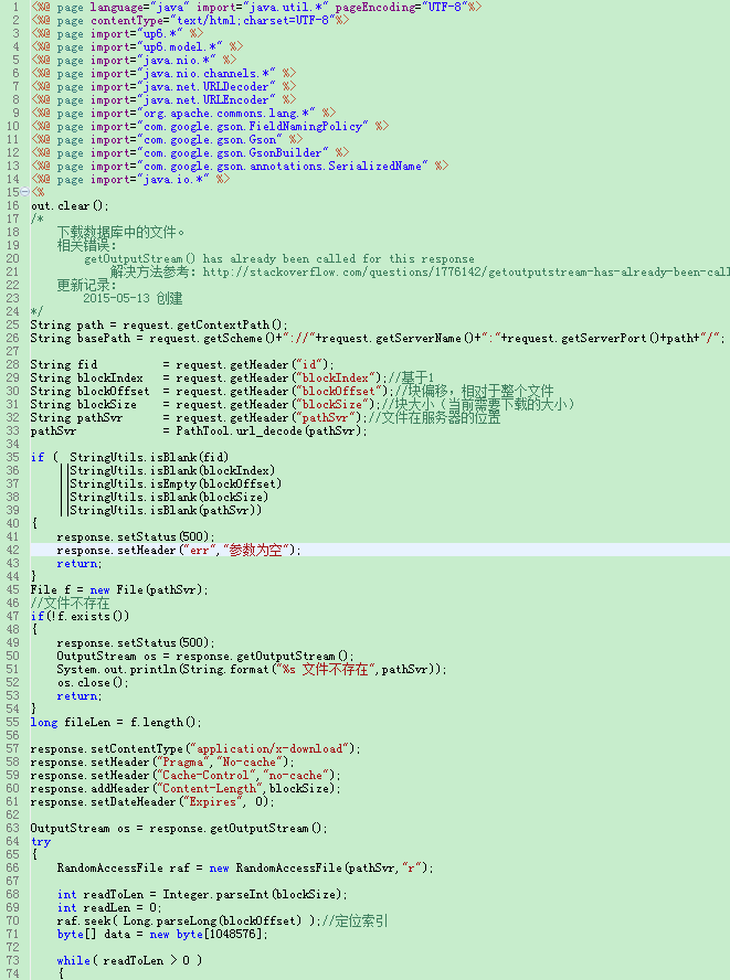 代码如下,此代码已经实现了断点续传功能,用户在下载过程可以暂停,和继续下载,对服务器造成的压力也比较小。