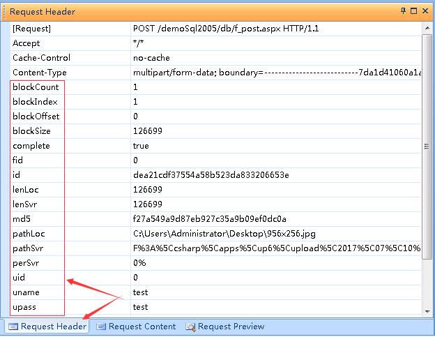有没有发现什么,是不是和前面Jsp页面上传的结果类似?对的,还是去掉"请求头"后的"Request消息体"。