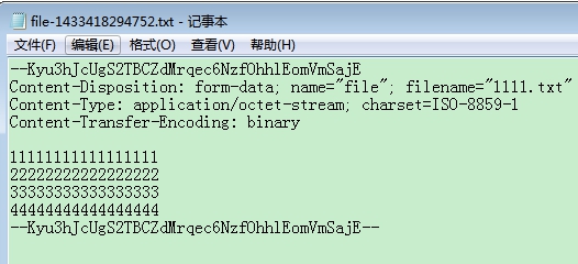 结合前面讲的HTTP协议的消息结构,不难发现这些文本就是去掉"请求头"后的"Request消息体"。所以,如果要得到与上传文件一致的文本,还需要一些字符串操作,这些就留给大家了。