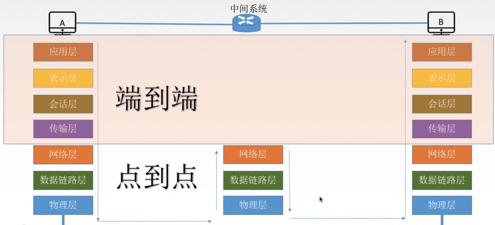 - 实体:第N层中的活动元素称为N层实体,同一层的实体叫对等实体