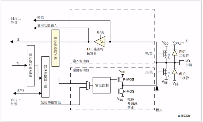 176个引脚中144个为GPIO,每一个GPIO引脚都有如图所示的电路图
