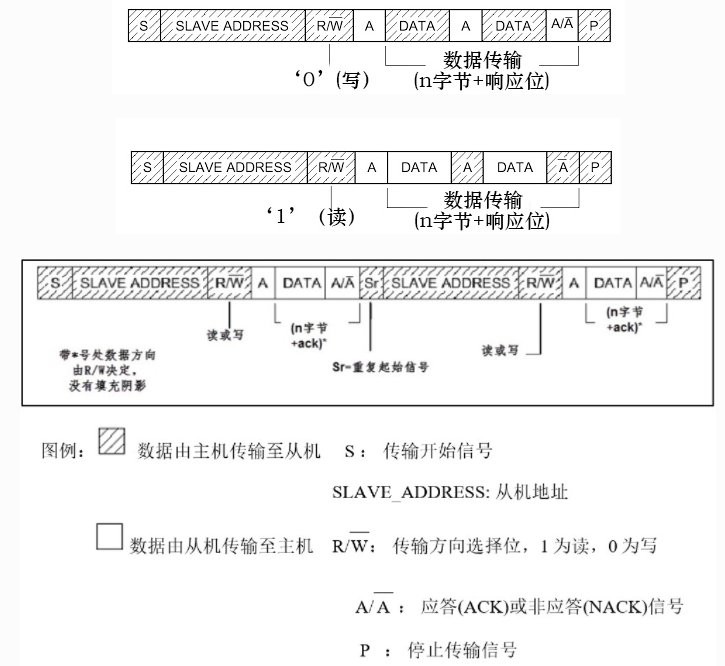 数据方向位为“1”时表示主机由从机读数据,该位为“0”时表示主机向从机写数据