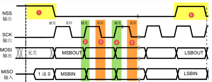 控制NSS信号线, 产生起始信号(图中没有画出);