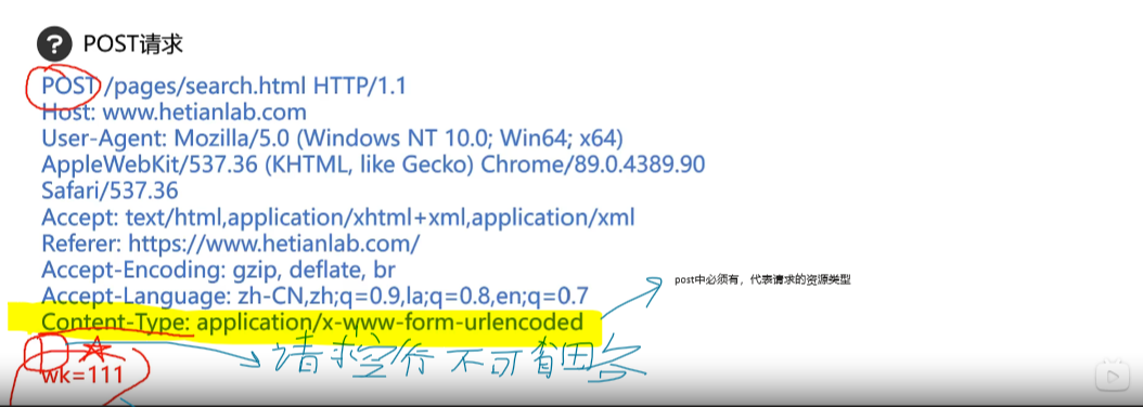 - post请求参数在请求体中,必须有Content-Type属性,无大小限制,字节型(字符,音乐,图片,视频等等),浏览器不同,发送的tcp连接次数不同。