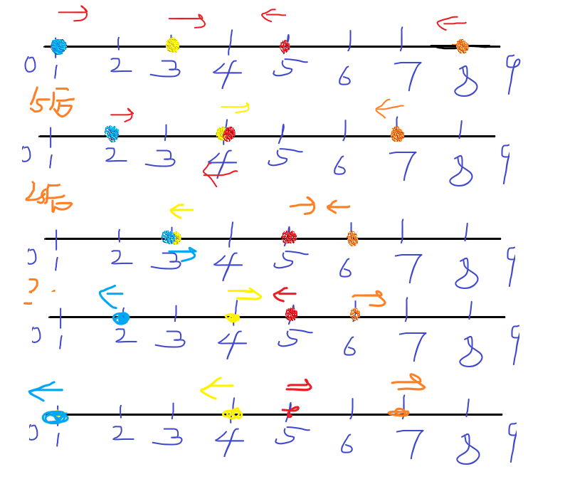 所以可以忽略相遇转向的过程,直接视为可以互相穿过
