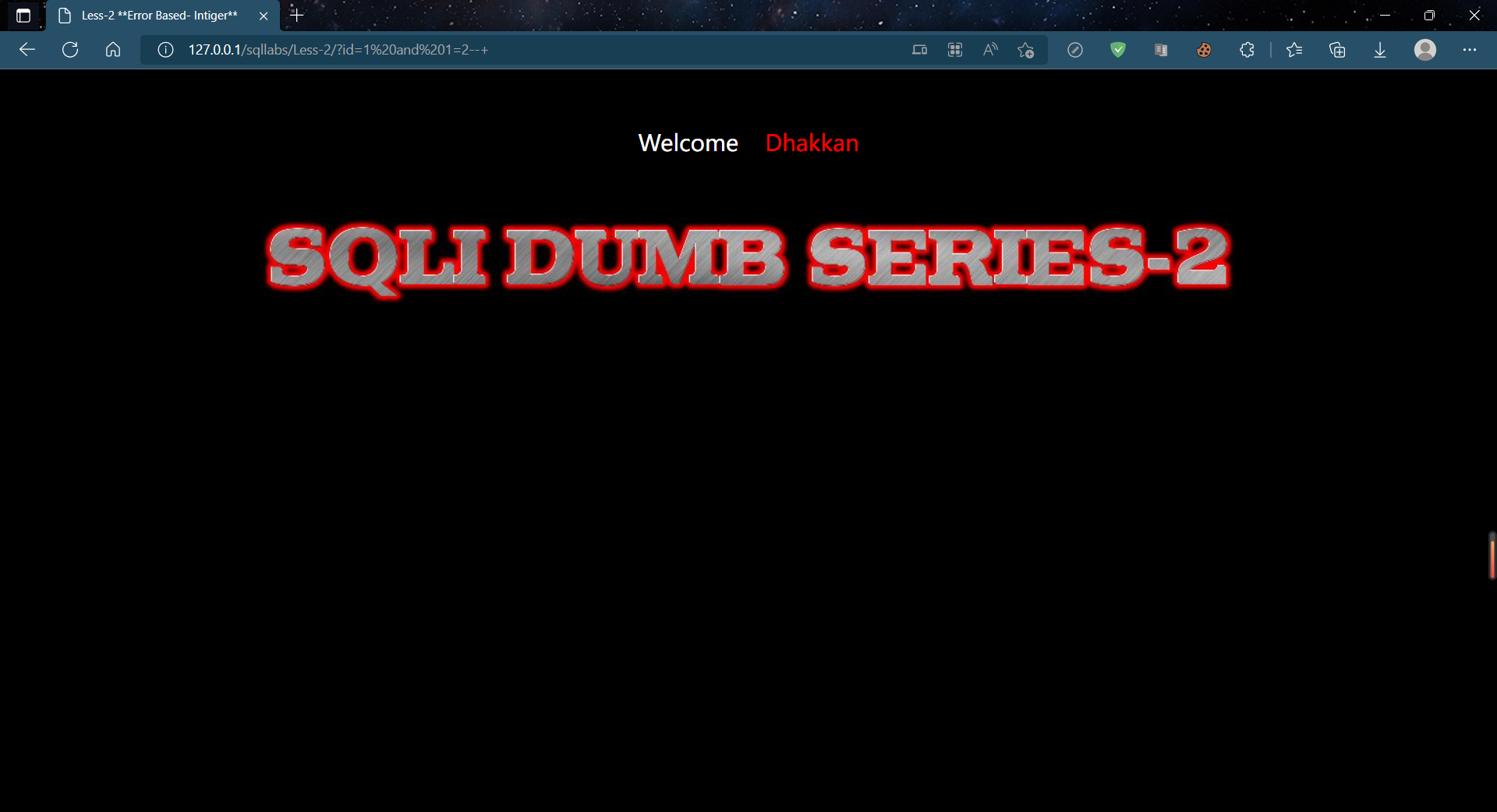 输入 ?id=1 and 1=2 --+ 后显示正常表明不是字符型注入