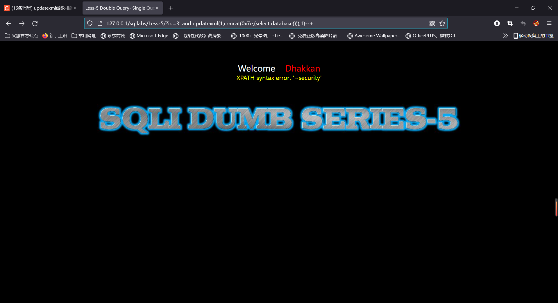 但是,输入后发现,在有正常输出时只显示 you are in--- 不出现回显,只有错误信息会正常显示,所以考虑通过 updatexml错误注入的方式进行注入(updatexml错误注入详解)