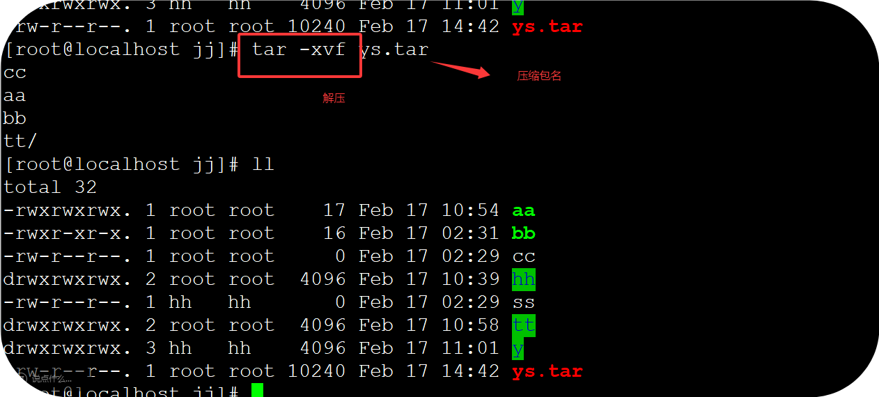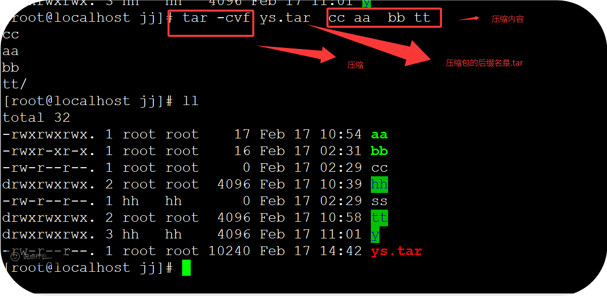 (3)tar.gz 打包:tar -zcvf ys.tar.gz 名称