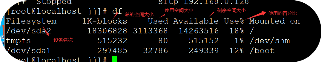 Used:已经使用的空间大小。Available:剩余的空间大小。