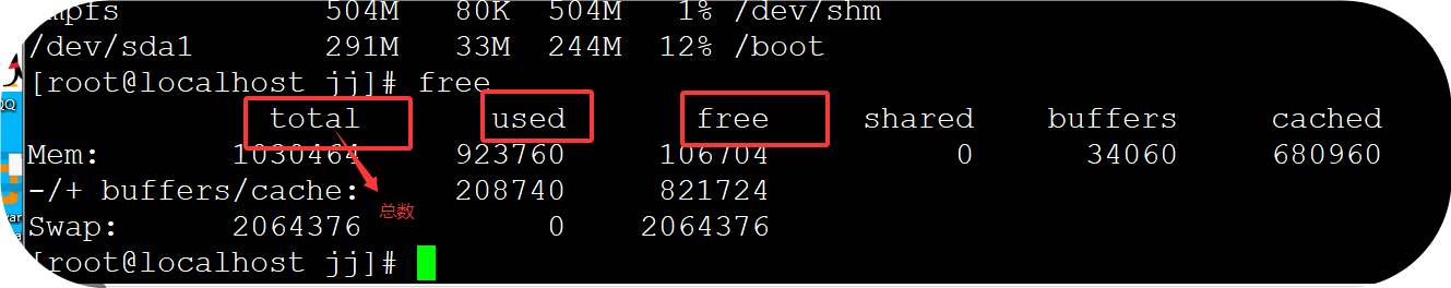 1K-blocks:说明下面的数字单位是1KB,可利用-h或-m来改变单位大小,也可以用-B来设置。