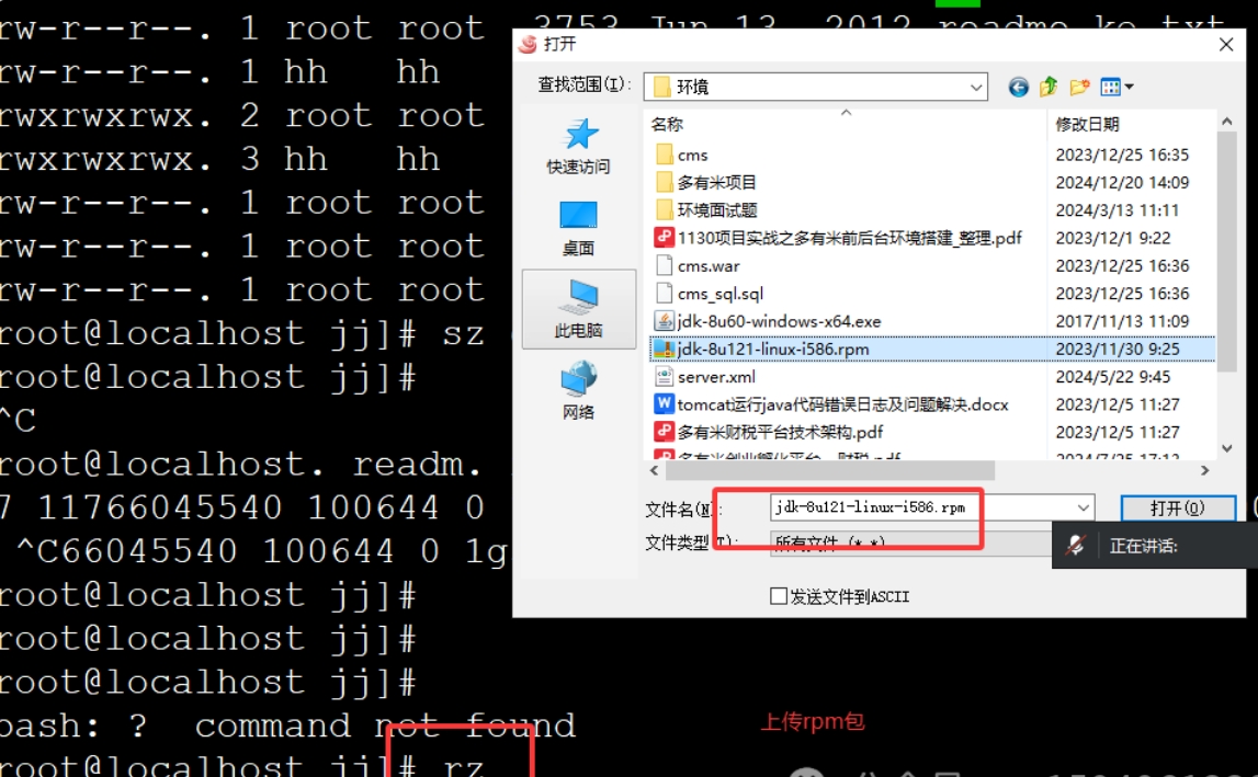 sz:将Linux资料下载到Windows当中(sz 名称,回车)