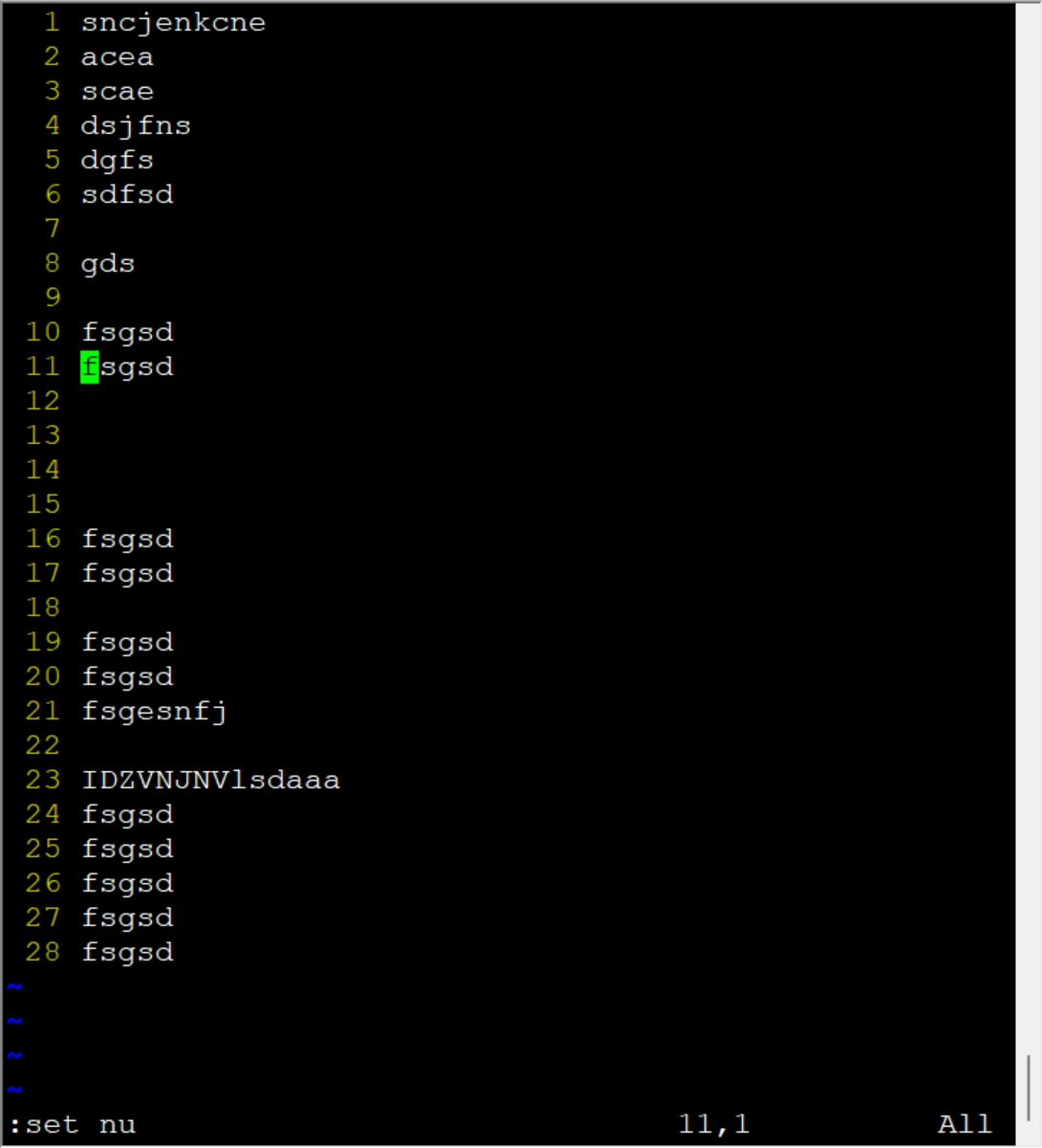 O键 在当前光标所在行上方,创建空白行,转换为输入模式 操作:ctrl+c O