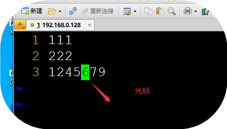 dd键 删除光标所在行 操作:ctrl+c d d 两次连续 dd