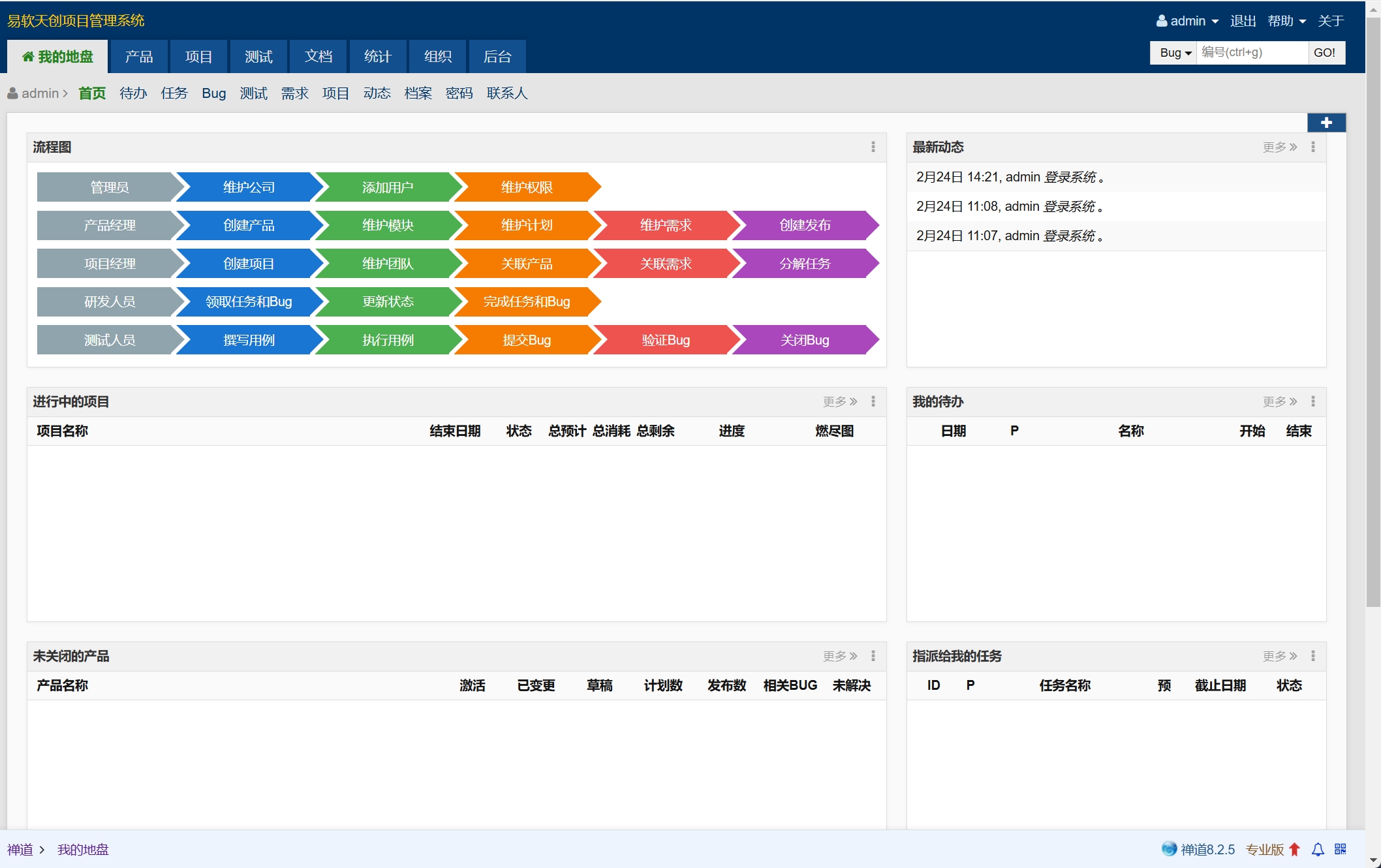 (4 )禅道是集于产品管理,项目管理,测试管理于一身,同时包含事务管理,组织管理众多功能,是中小企业管理的首先工具