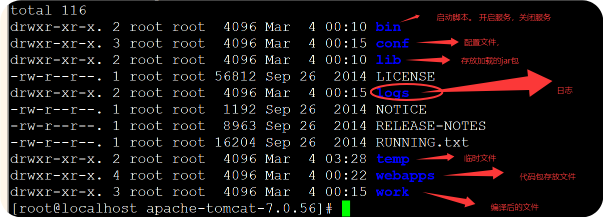 logs目录用来存放tomcat在运行过程中产生的日志文件,非常重要的是在控制台输出的日志。(清空不会对tomcat运行带来影响)
