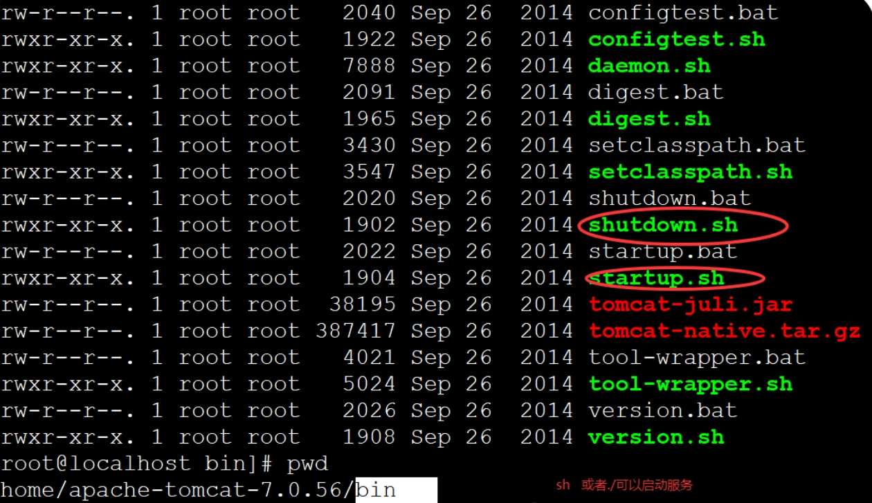 -在bin目录下启动tomcat命令: sh startup.sh或者./startup.sh