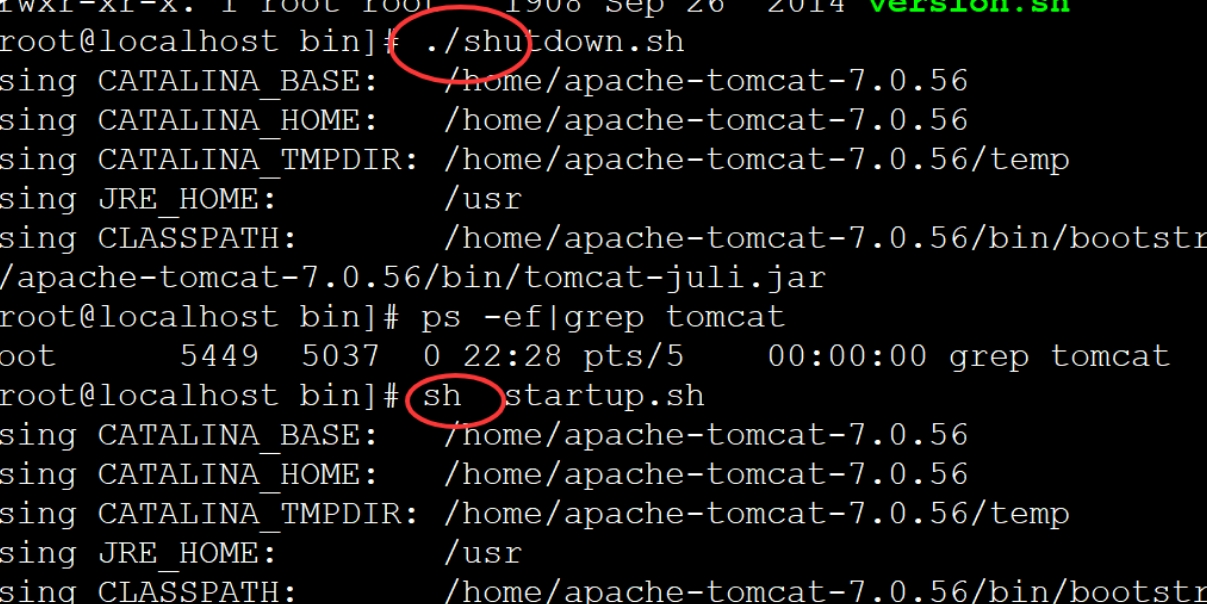 -在bin目录下关闭tomcat命令: sh shutdown.sh