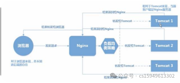 (b)nginx作为负载均衡服务器,用户请求先到达nginx,再由nginx根据负载配置将请求转发至 tomcat服务器。
