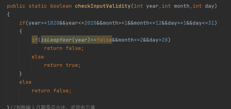 在我代码中少了对30天的月份的判断比如9月31我这个函数直接认为没有错误。应该加入对天数为31天,天数为30天以及2月分别判断。