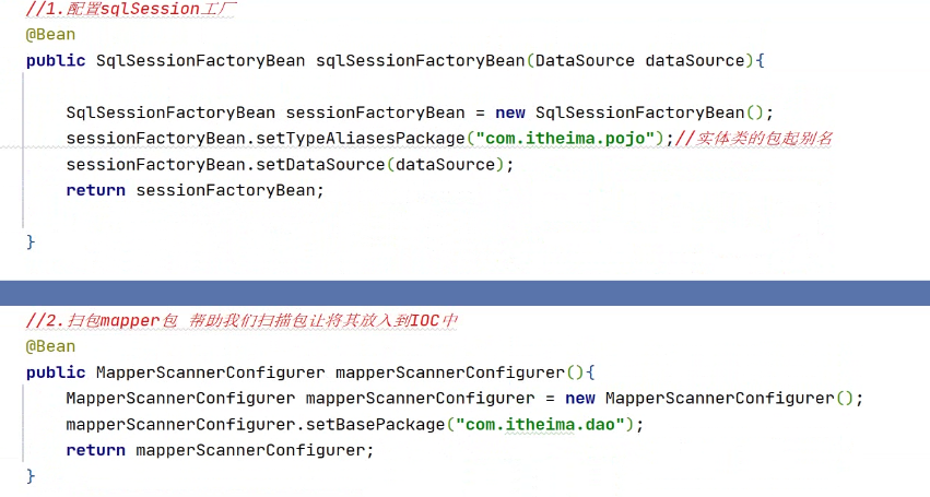 2.在config中创建配置类,在配置类里面利用@bean创建方法返回数据库信息,同时扫描包,将包放入IOC容器中