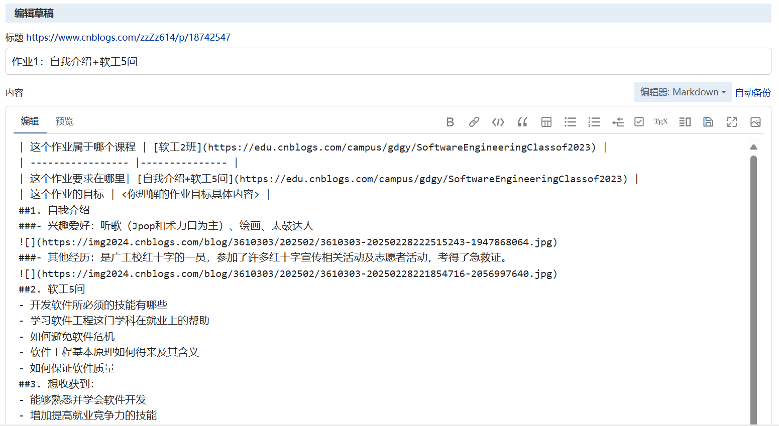 | 这个作业要求在哪里 | 自我介绍+软工5问 |