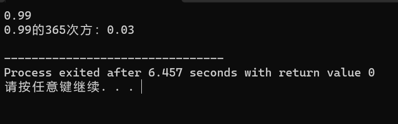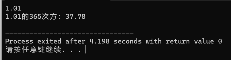 printf("%.2f的365次方:%.2f\n", x, ans);