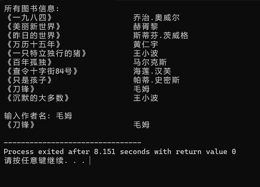printf("\n输入作者名: ");